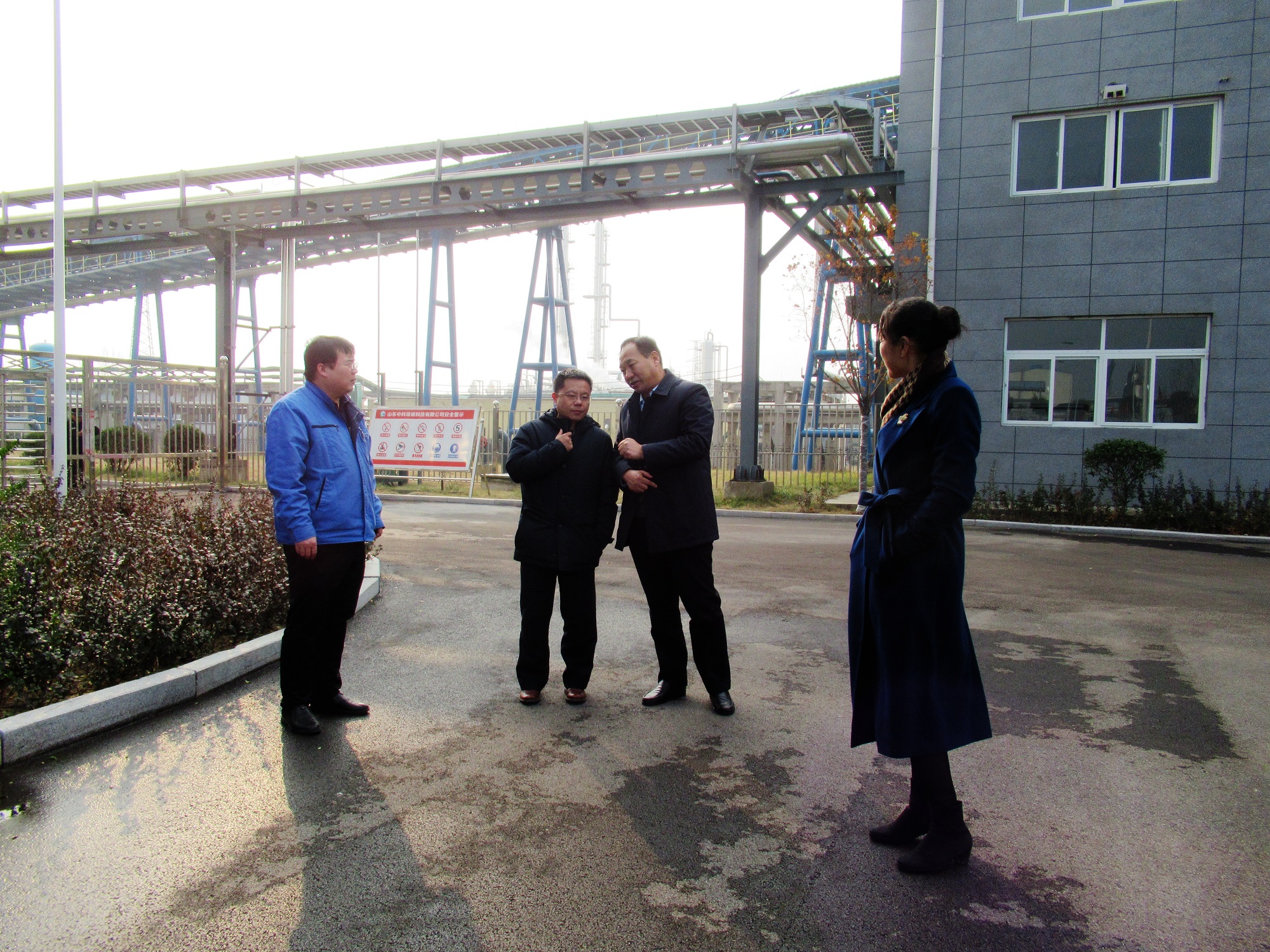 孫洪剛首先參觀了維度公司,認(rèn)真聽取老區(qū)的情況介紹,并對(duì)老區(qū)周邊狀況進(jìn)行了考察。隨后對(duì)中科綠碳科技公司進(jìn)行了參觀,聽取了DMF裝置試驗(yàn)、成果鑒定、新工藝節(jié)能減排和中試平臺(tái)運(yùn)行等情況