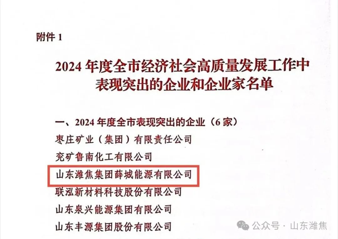 薛城能源公司榮獲“高質(zhì)量發(fā)展工作突出企業(yè)”榮譽(yù)稱號(hào)